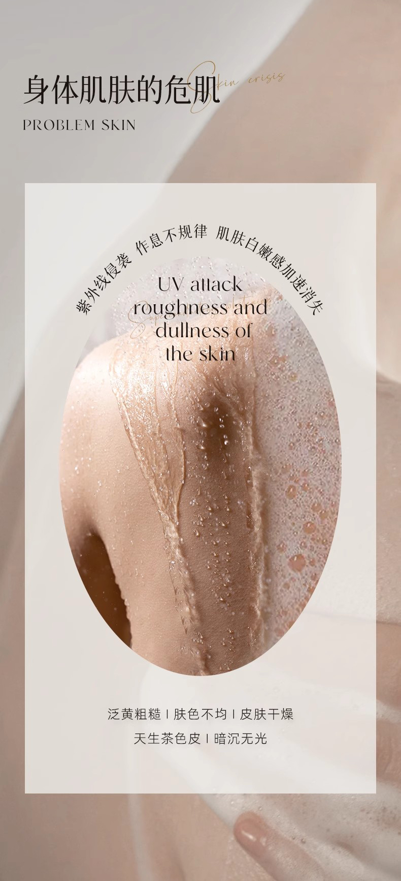 改善泛黄粗糙、|肤色不均、皮肤干燥、天生茶色皮、暗沉无光,提亮肌肤白皙度,让肌肤水润发光