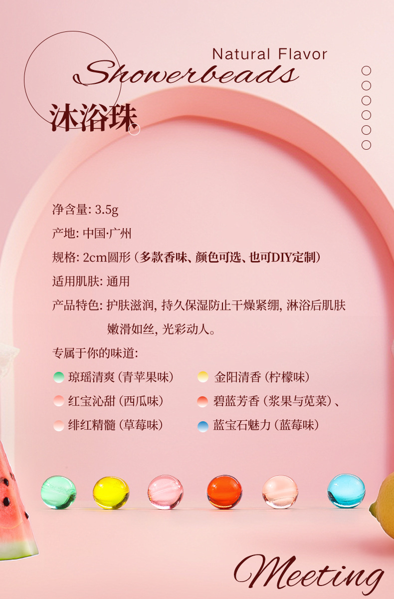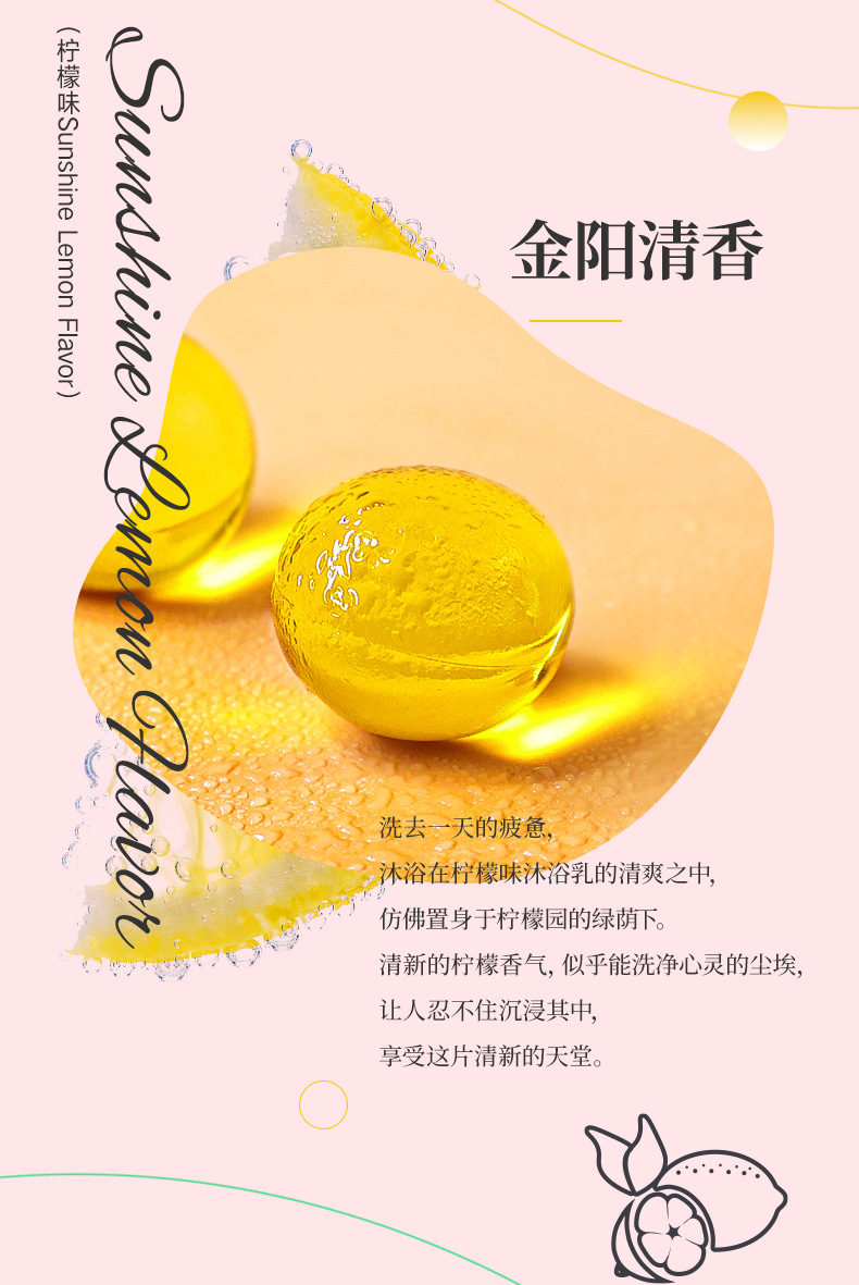 果香味滋养沐浴珠,护肤滋润,持久保湿防止干燥紧绷,淋浴后肌肤嫩滑如丝,光彩动人。